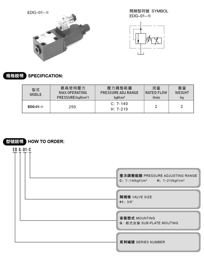 油壓電磁比例引導調壓閥 EDG-01