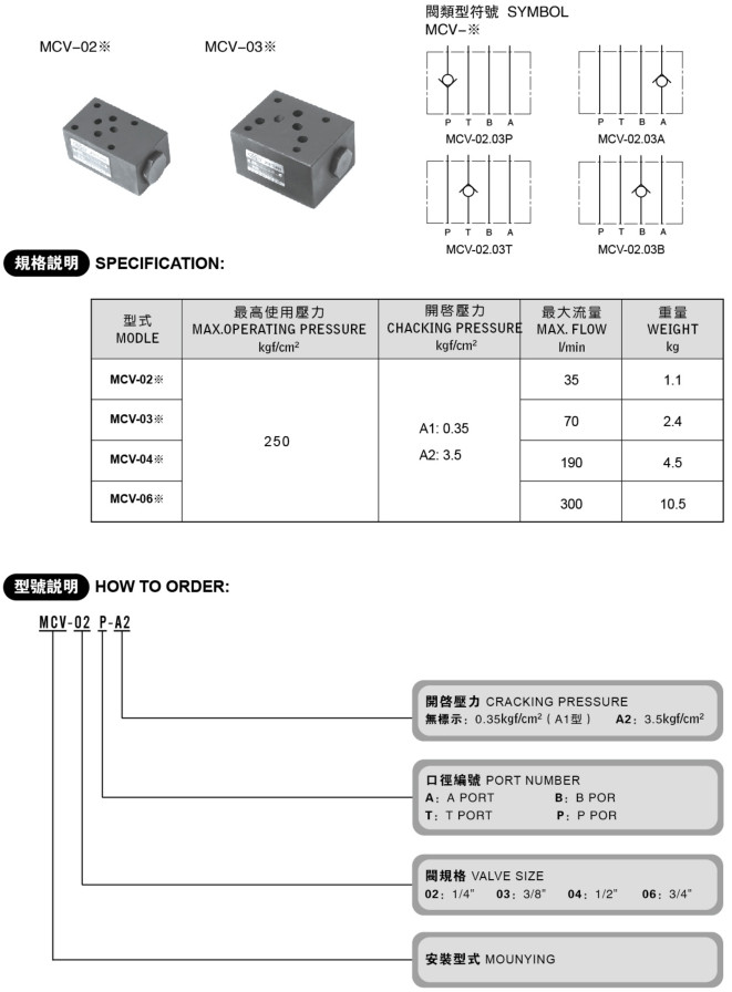 疊加式單向閥 MCV