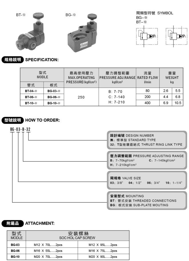先導式溢流閥 BG-03